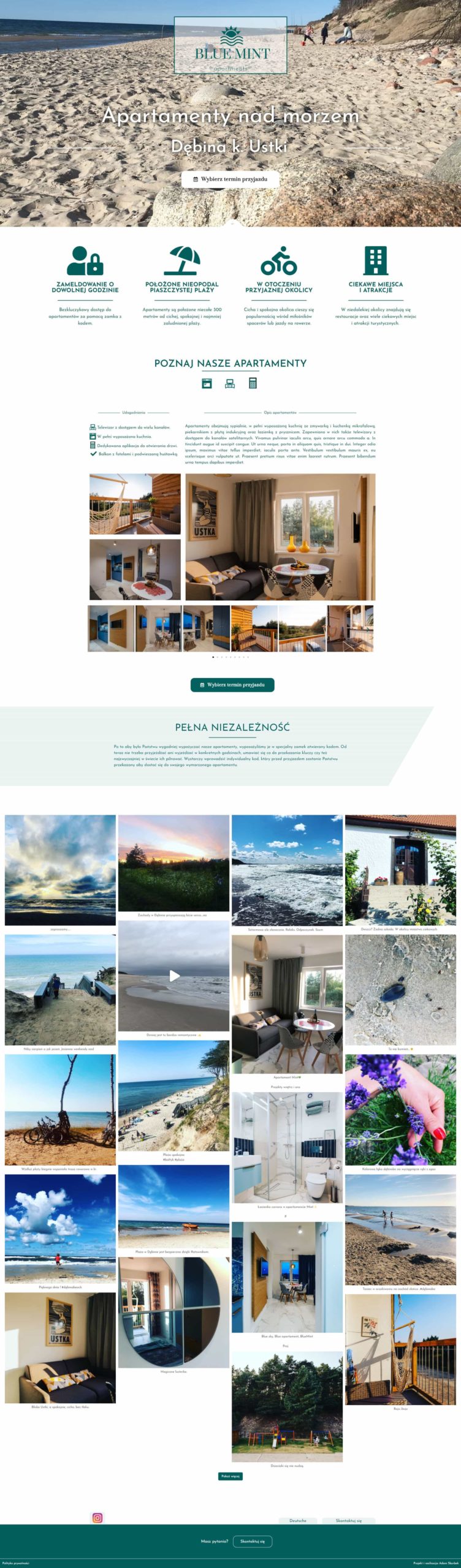 Blue Mint to nowoczesna witryna, skupiająca się na wynajmie apartamentów dla wymagających klientów, ceniących komfort oraz atrakcyjne lokalizacje. Wizualna prezentacja oferty zachęca do rezerwacji, jednocześnie podkreślając wysoką jakość usług.