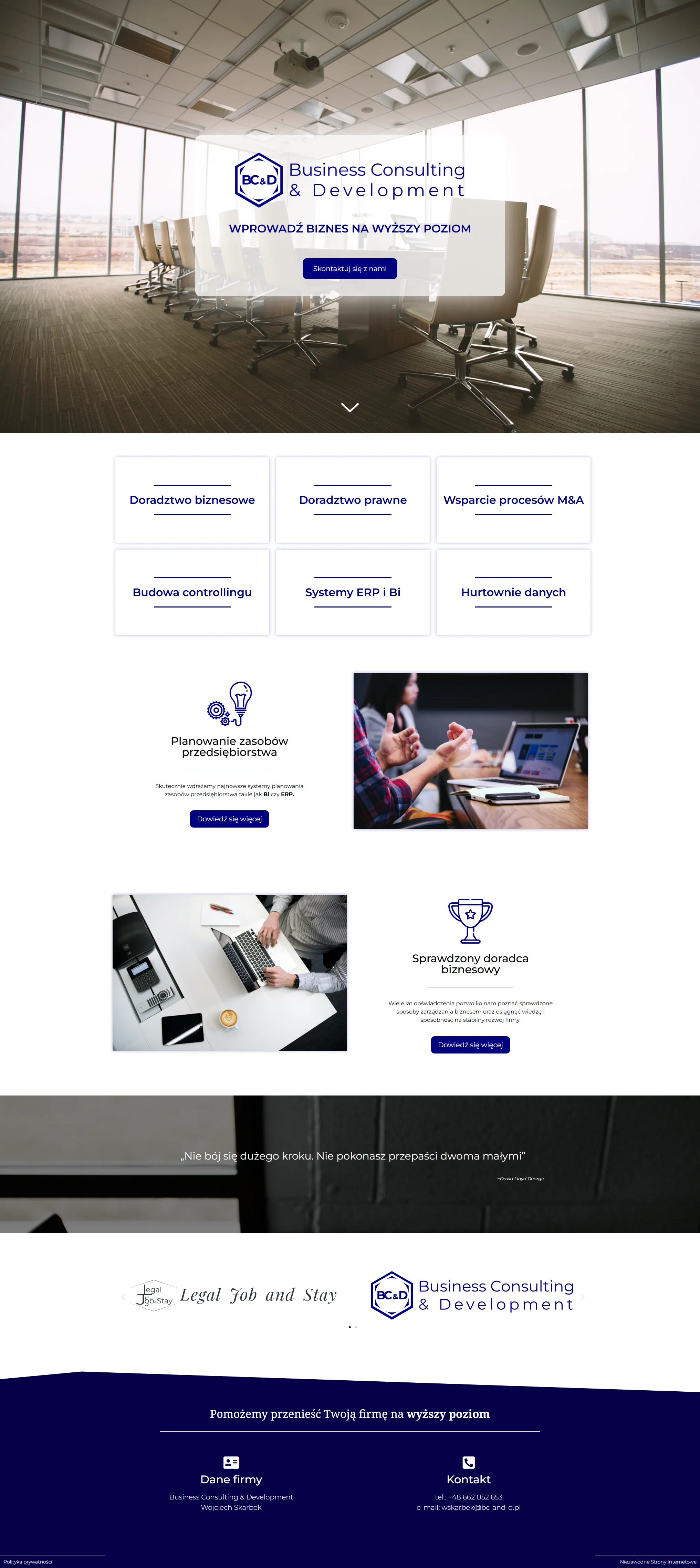 Ten projekt jest przykładem prostej strony wizytówkowej, przeznaczonej dla firmy świadczącej usługi konsultingowe i wdrożeniowe. Przejrzysty układ i zwięzłe treści pozwalają błyskawicznie poznać zakres oferty oraz wartości firmy.