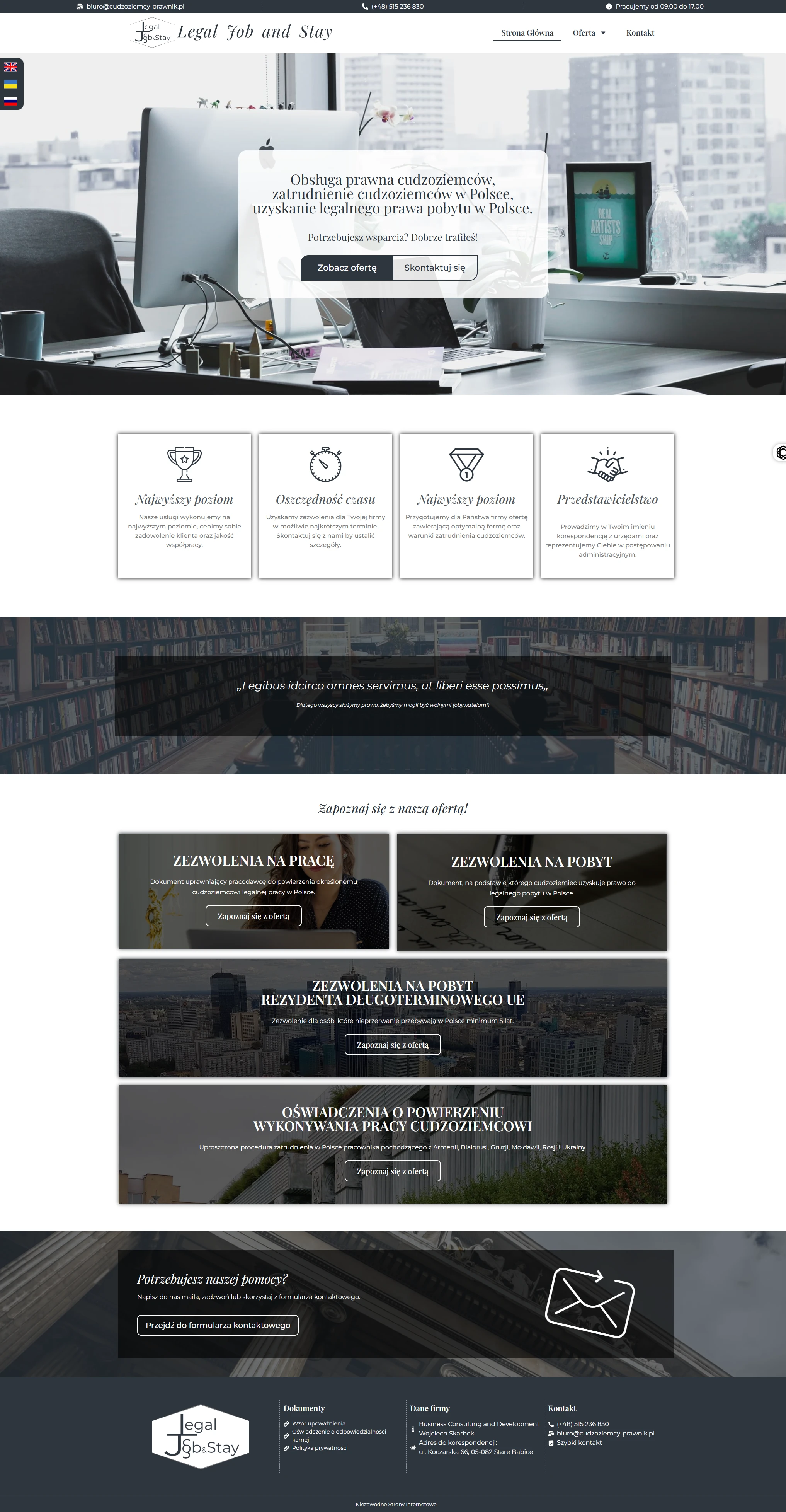 Legal Job & Stay to witryna dedykowana obsłudze prawnej cudzoziemców w zakresie pozwoleń na pracę i pobyt, prezentująca niezbędne informacje w jasnej i przystępnej formie.
