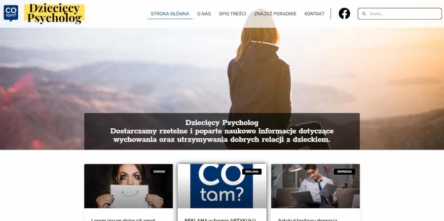 Dziecięcy psycholog to portal informacyjny opracowany we współpracy z branżą psychologiczną, poświęcony zagadnieniom zdrowia psychicznego najmłodszych. Strona umożliwia rodzicom oraz opiekunom szybkie wyszukanie rzetelnych materiałów, pomagających w codziennej opiece.
