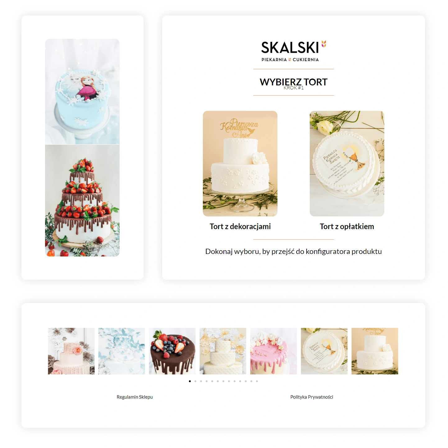 Zakres prac obejmował przywrócenie strony do pełnej sprawności oraz rozwój funkcjonalności jak m. in. wdrożenie zaawansowanego konfiguratora tortów, który uwzględnia liczne opcje i zależności. Rozbudowane funkcjonalności umożliwiają klientom samodzielne personalizowanie zamówień w intuicyjny sposób.